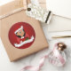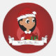 Diseño con un ilustracion de una linda sonriente chica feliz con el pelo castaño largo, lleva disfraz rojo y blanco de Santa Claus y tiene un regalo; con plantilla de texto editable para tu nombre o mensaje, Navidades diseño de vacaciones con fondo rojo