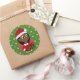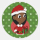 Diseño con ilustracion de un lindo sonriente y feliz chica afroamericano de pelo largo y negro, el chica está usando un disfraz de Santa Cláusula con gorra rojo y sosteniendo un regalo; en círculo rojo sobre fondo verde con un patrón impecable con estrellas verdes y blancas. Para ver más de mis personajes de caricatura, por favor visite mi tienda