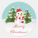 Pegatina Redonda Personalizado Cuerdo Snowman Y Feliz Texto De Navi