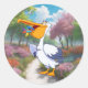 Pegatina Redonda Personalizado Cute Pelican con Pescado, pájaro mar