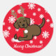 Pegatina Redonda Personalizado de Chocolate Labrador y Santa Navida
