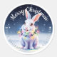 Pegatina Redonda Personalizado de Conejo de Nieve Feliz Navidad