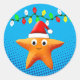 Pegatina Redonda Personalizado de Cut Starfish Santa Hat Navidades