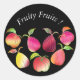 Pegatina de personalizable, lindo, con texto blanco y fondo negro, con dibujos a mano y diseño digital colorido, Relieve metalizado texturado, frutos caprichosos. Ideal para un negocio o un evento promocional que vende o está asociado con frutas, productos o nutrición. Perfecto para cualquier chef, panadero o cocinero casero, que tenga un regalo o quiera decorar su libro de cocina, recetas favoritas o productos con pegatinas de fruta. Si lo desea, personalice "¡Frutos de la Fruta!" con su propio nombre comercial, lema o texto deseado.