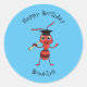 Pegatina Redonda Personalizado de hormiga roja feliz