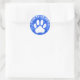 Versión en blanco de la huella de la pata. pegatinas personalizados en decoración y etiquetado. Versión de color azul. El texto se puede editar para la personalización.