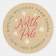 Añade un poco más de alegría a tus vacaciones y Navidades, con regalos personalizados de Santa! Estos pegatinas especiales presentan "Entrega especial de Santa Just para (nombre del niño)" en texto circular alrededor del Polo Norte y copos de nieve blancos en el centro y un fondo marrón kraft.