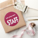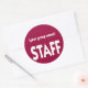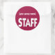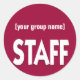 Reconocer al PERSONAL en su evento, organización o negocio con esta etiqueta. La palabra "PERSONAL" es grande, con letras blancas y estilizadas, con una sombra negra que la hace destacarse. Sólo cambia a tu texto personalizado o nombre de grupo. Cambie el color de fondo si lo desea (personalizar/edición/fondo). Ideal para conferencias, convenciones, espectáculos, ferias o negocios de cualquier tipo.