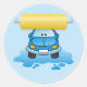 Lavado de auto personalizado azul sonriente bajo cepillo de lavado de carros.