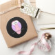 Pegatina Redonda Personalizado de Lechuza. Rosa
