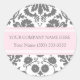 Personalizable nombre de la empresa y contacto pegatinas del negocio de la información de contacto en el patrón de vintage de damasco floral clásico claro rosa bebé, gris oscuro de carbón vegetal y blanco, perfecto para añadir su información a bolsas, paquetes o sobres. Contáctenos para obtener un color personalizado o para productos de pequeñas empresas.