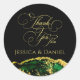 Un boda de tinta alcohólica suntuoso y lujoso, abstracto, gracias pegatinas. Deluxe esmeralda verde, negro y oro con un tipo de letra de guión de moda. Edite fácilmente la plantilla a los nombres de la novia y el novio. Arte original hecho con tinta de alcohol por la artista internacional Pauline Benjes. Personalizado de oro verde esmeralda de lujo Pegatina redondo clásico.