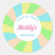 Pegatina de personalizados de niños pastel retro. Este divertido y moderno Pegatina de fiestas de cumpleaños para niños presenta un diseño retro en tonos pastel con un nombre personalizado. Permita que este suministro de fiestas ayude a definir el tema para el próximo cumpleaños de su hijo.