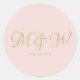 Boda personalizado elegante Pegatinas clásicos redondos con escritura rosa rubor dorado monograma. Personalizar, personalizar, con su letra individual, iniciales, alfabeto, número, números