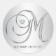 Pegatina Redonda Personalizado Elegante Plata Monogramada Letra Ini