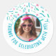 Pegatina Redonda Personalizado Foto Nombre Confetti Cumpleaños Grac