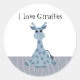 Un diseño caprichoso para los amantes de la jirafa con un patrón animal en el fondo. Una linda jirafa juguetona, en el color azul porque es divertido, está sentado. Personalizar pegatina según lo desee.