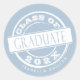 Este polvoriento pegatina graduado azul presenta una expresión blanca de "clase de" dentro de un círculo que parece un sello. Simplemente introduzca su nombre y año de graduación. Úsalo como una fiesta de graduación a favor de la decoración pegatina o sello para sobres.