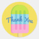 Personalizado gracias pegatinas con el diseño del logo del helado de palmita. Agregue su propio texto a la plantilla. Ilustracion de arte vectorial con helado de frutería. Agradable diseño de la comida de verano. Crea tus propios sellos para sobres y regalos favorece a los pegatinas para los niños Fiesta de cumpleaños, ducha de bebé, boda, etc. Colorida impresión veraniega.