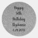 Pegatina Redonda Personalizado gris plateado Purpurinoso Feliz cump