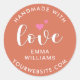 Personalizado Hecho A Mano Con Amor Con Pegatina Redondo Clásico Del Corazón Rosa.
