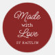 Personalizable "Hecho con amor" pegatina de rojo oscuro. Solo agrega tu nombre.