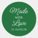 Personalizable "Hecho con amor" pegatina en verde bosque. Solo agrega tu nombre.