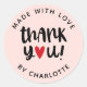 Un pegatina personalizado "hecho con amor, gracias" con un fondo rosado. Hazlo tuyo añadiendo tu propio nombre. Un toque de bonito para agradecer a sus clientes la compra de su pequeña empresa. Viene en una variedad de colores. Diseñado para ti por Blackberry Boulevard.