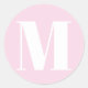 Pegatina Redonda Personalizado monograma luz rosa blanco número ini