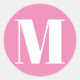 Pegatina Redonda Personalizado monograma número inicial blanco rosa