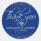 Guión de caligrafía encantadora personalizado gracias pegatinas de boda para añadir a sus sobres y/o favores de regalo. Fondo azul marino (se puede cambiar a cualquier color). Purpurina gris plateado falso confetti y corazón. Perfecto para cualquier tema boda. Etiquetas de plantilla modificables.