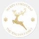 Pegatina Redonda Personalizado Purpurina Renos Oro Feliz Navidad