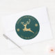 Pegatina Redonda Personalizado Purpurina Renos Oro Feliz Navidad