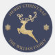 Purpurina personalizado Oro y reno azul de la Marina Feliz Pegatina de Navidad.