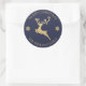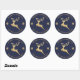 Pegatina Redonda Personalizado Purpurina Renos Oro Feliz Navidad