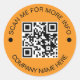 Pegatina Redonda Personalizado QR Code NARANJA redondo a prueba de
