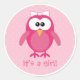 Pegatina Redonda Personalizado Rosa Owl Es Un Recién nacido Chica