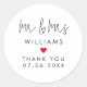Boda personalizado favor de dar las gracias pegatinas con el texto "Sr. y la señora" y el apellido del recién casado. Diseño con un diseño moderno, personalizado con la fecha boda y un poco de corazón rojo.