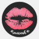 Pegatina Redonda Personalizado Texto Palo de labio rosa Kiss Mwah m
