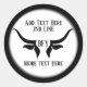 Pegatina Redonda Personalizado Texto y Bulls Monogramas Cuerno