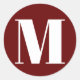 Pegatina Redonda Personalizar monograma número inicial burgundy bla