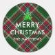Pegatina Redonda Personalize Modern Plaid Christmas Tree Name