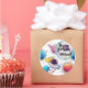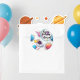 Featuring a cute astronaut floating among colorful planets, stars, and a magical galaxy background, these stickers are perfect for space-themed birthday parties. Personalize them with your child’s name to make your party decorations even more special.