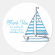 Ahoy, party planners! Elevate your nautical milestone celebration with these stylish, personalized cabana stripe sailboat stickers. This circular "Thank You" label, featuring a classic blue and white cabana stripe design on the sails, is the perfect coordinating touch for a milestone birthday or any maritime-themed event. These decals create a polished, professionally finished look on favor bags, envelopes, and treat boxes that will make every guest feel truly appreciated.