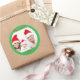 Your unique photo and two lines of personalized text highlight these custom Merry Christmas round stickers.