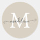 Pegatina Redonda Personalized Script Name Monogram Warm Beige
