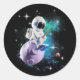 Pegatina Redonda Pesca Astronauta En La Galaxia Del Espacio Ultrate