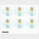 Cumpleaños gracias pegatinas con un lindo ilustracion acuático. Un adorable león con una corona pescando estrellas sentadas en una luna creciente descansando en una nube esponjosa. Ilustracion mágico de fantasía. Fondo de color azul claro.
