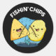 Pegatina Redonda Pescado chips Funny Food Pun Dark BG