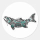 Pegatina Redonda Pescado espiritual verde azulado azul y negro de H